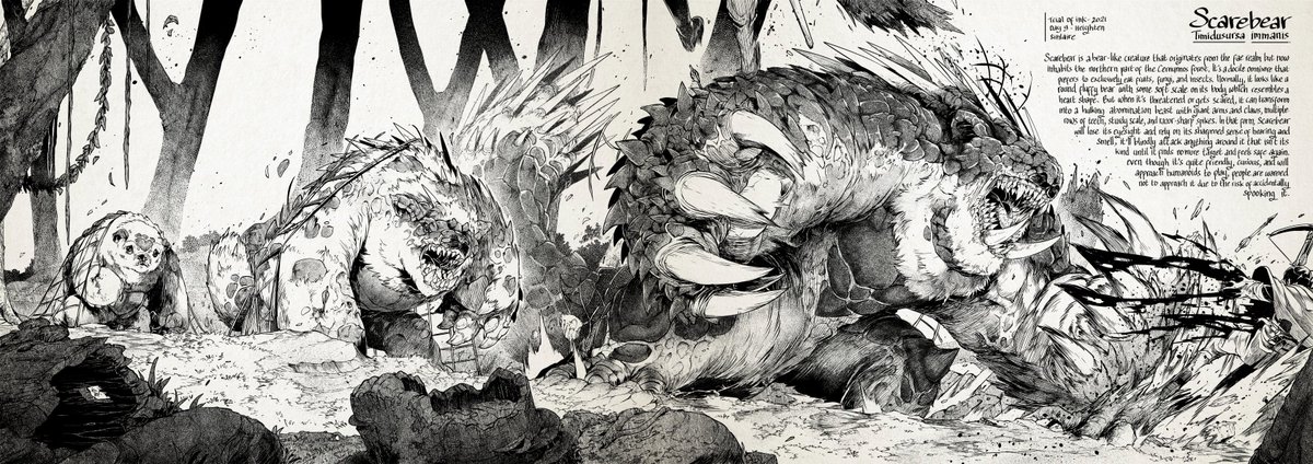 Trial of Ink - Day 9 - Heighten Scarebear Timidusursa immanis "I love you. You love me. Let me eat your family." #trialofink #trialofink2021 #inktober #artober #drawtober