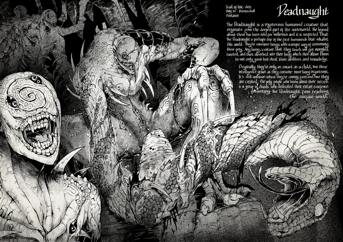 Trial of Ink - Day 14 - Primordial Deadnaught ancient humanoid creatures lurking from the deepest part of the planet. #trialofink #trialofink2021 #inktober #artober #drawtober