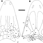 #temnovember2022 day 11: Jammerbergia Was this the only #temnospondyl starting with "J"?, yes; Does makes it less interesting?, nah; So here we have #Jammerbergia, a #mastodonsaurid from the Triassic of Africa #paleoart #sciart #amphibian #temnovember #triassic #FossilFriday