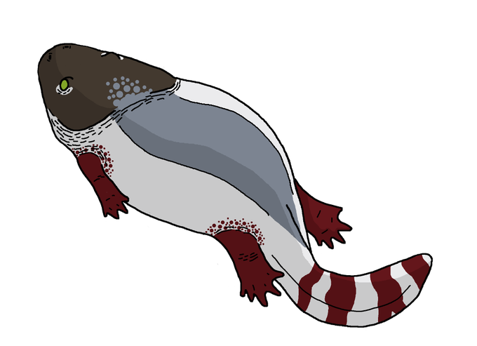 #Temnovember2022 day 28: Xenobrachyops For the twenty eighth day of #temnovember we got our selfs a small #brachyopid from the rivers of early #Triassic Australia, #Xenobrachyops #paleoart #sciart #amphibian #temnospondyl