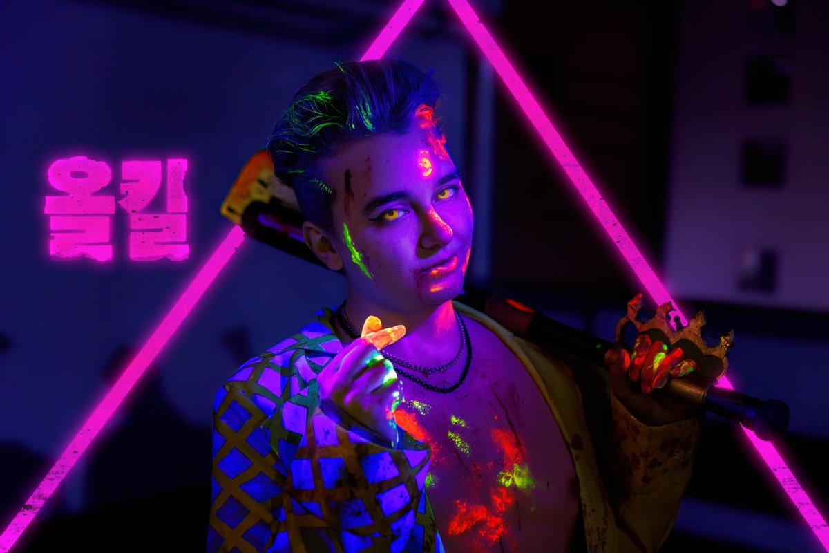 I am a Trickster main in DBD so this shoot was such a joy! UV paints is something I have never used, so I had to do a lot of pre-shoot testing. All of the glow in this photo is from the UV paint, no added glow! Cos: @EnShattersound #Cosplay #Trickster #Dbd #Deadbydaylight