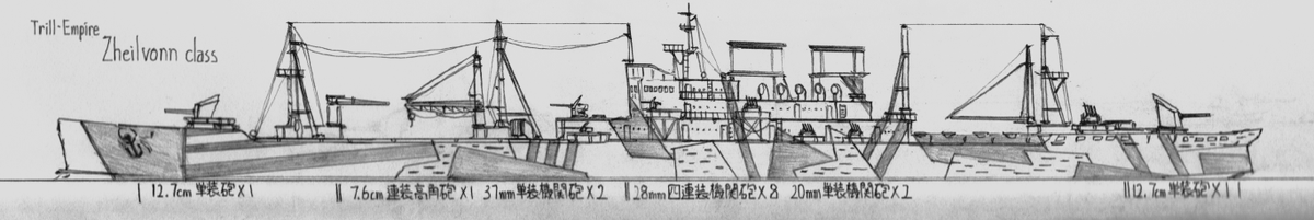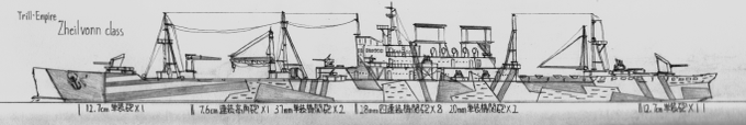 #架空艦 #イラスト #Trill_Empire 名称 Gráwsirshvoliyer(グラウサーシヴォリエー) 艦隊中核水雷装甲艦(水雷軽巡洋艦) 主砲 15cm単装砲 5基 副砲 7.6cm連装砲 2基 機砲 47mm連装機関砲 2基 機砲 20mm四連装機関砲 2基 機銃 7.62mm単装機関銃 10基 →