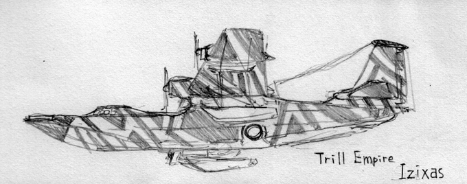 #架空機 #イラスト #Trill_Empire 名称 Izixas(イツィザス) 設計 Ximbas(シンバス) 旋回時間 26秒 上昇速度 7m/s 離陸距離 400m 最高高度 8900m 最高速度 311km/h (高度 3800m) 航続距離 4250km →