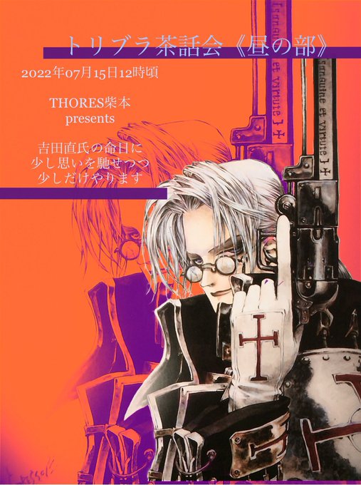 私の描いた『トリニティ・ブラッド』公式画は2018年の雑誌ザ・スニーカーの復刊記念号イラスト(1)以来は描いてないのですが、個人的には毎年吉田直氏追悼画(2)やヴァレンタインデイの御礼画(3)、その他深夜テンションで偶に描く落書き画くらいは描いていますかね… #THORESShibamoto #TrintyBlood