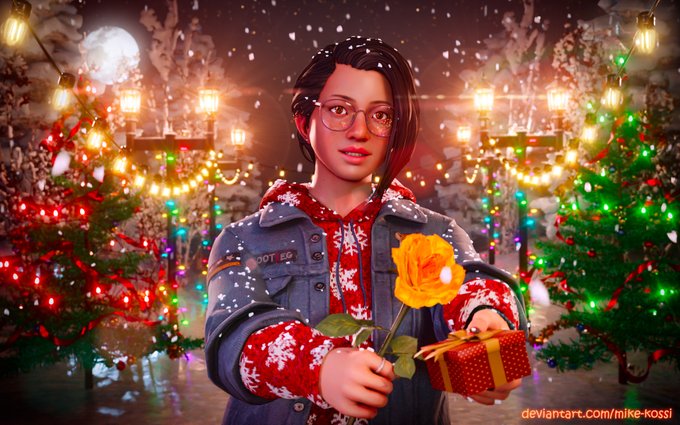Merry Xmas and Happy Holidays! 🎄☃️❄️🎉🎁 #LifeIsStrange #TrueColors #AlexChen #snow #fairylights #sweater #gift #rose #blender3d #fanart #xmastree #ChristmasEve #Christmas2021