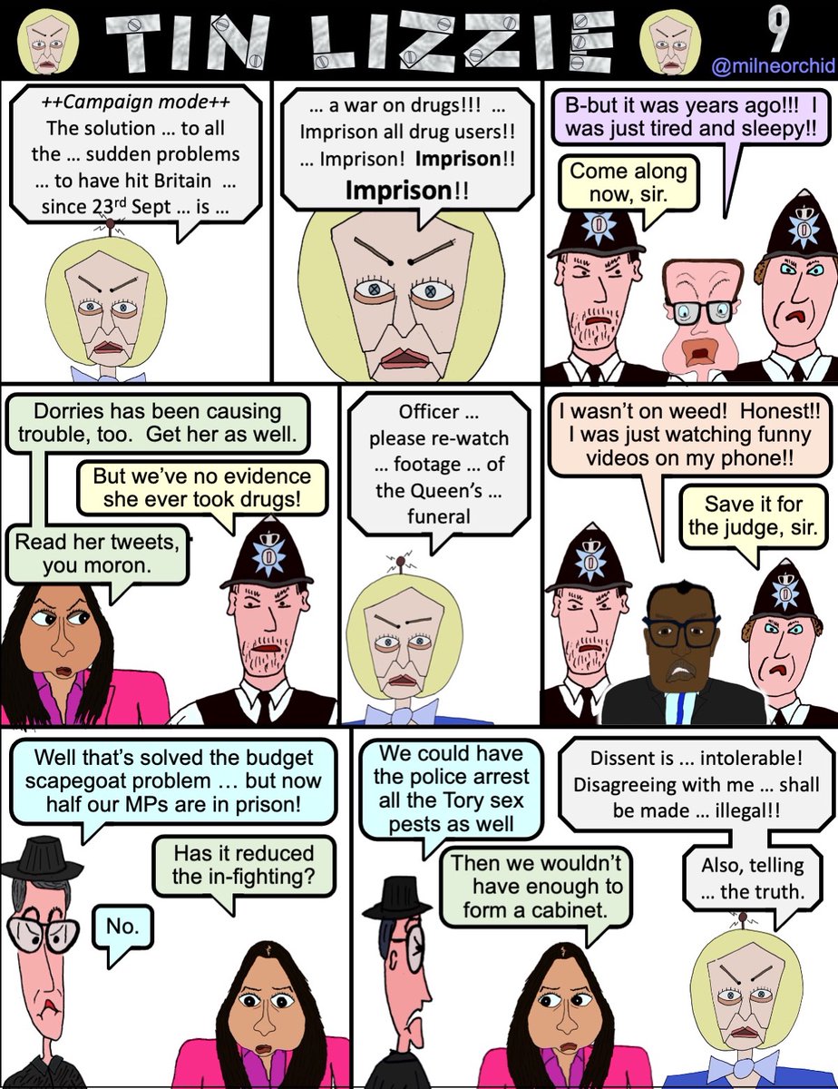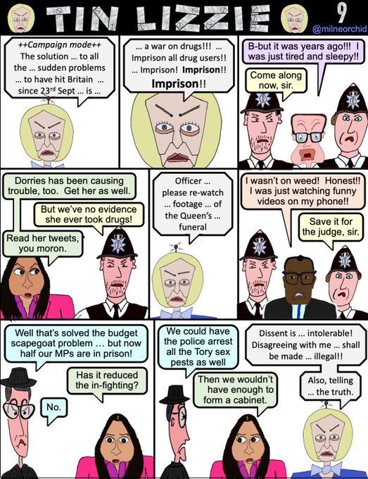 As the UK economy spirals into oblivion, and their party into civil war, the Tories have the answer. Criminalise cannabis! A new war on drugs! That'll sort it ... #TrussMustGo #DetestToryValues #SuellaBraverman #TinLizzie