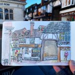 Quick sketch and a coffee in East Grinstead #historic #tudor #EastGrinstead #Sussex #artjournal #sketch #skethbook #moleskine #art #illustration #watercolour