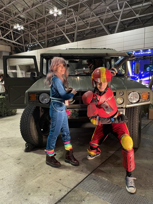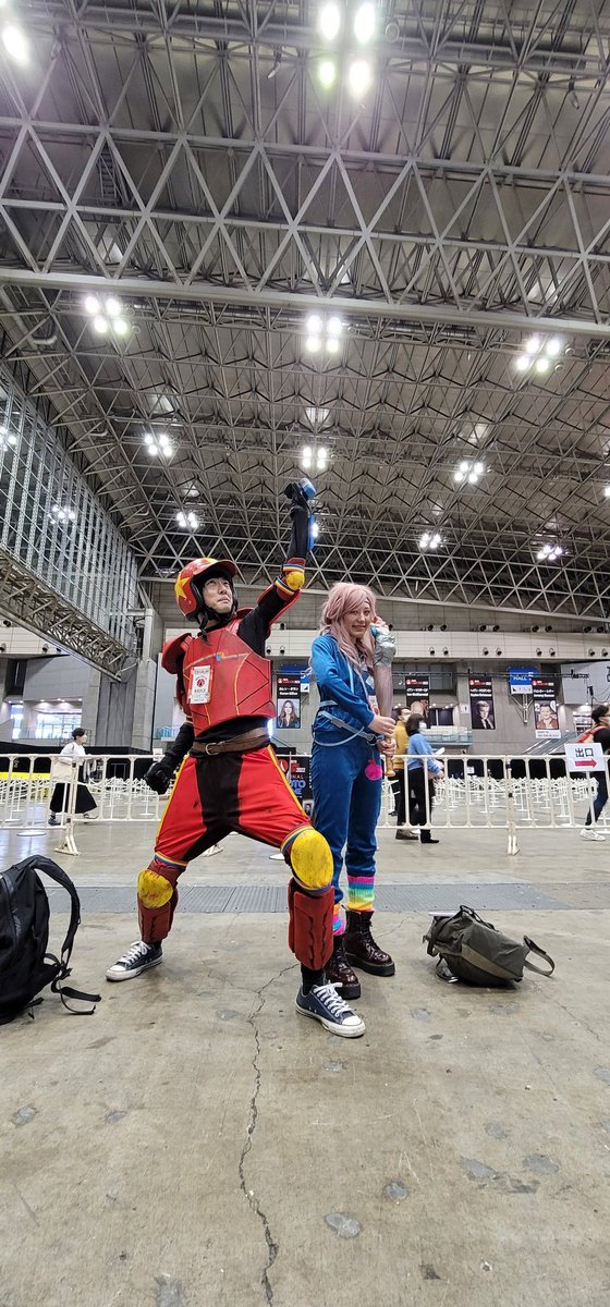 という事で「ターボキッド」のキッドでした 初めてちゃんとコス衣装作成したから色々アレですが、皆さんターボキッドとわかってくださり嬉しかったです。 ありがとうございました!!! 最後にアップル(@exo_haemin )と劇中にはない武器交換🙏 #東京コミコン2022 #東京コミコンコスプレ #turbokid twitter.com/murasamesaur…