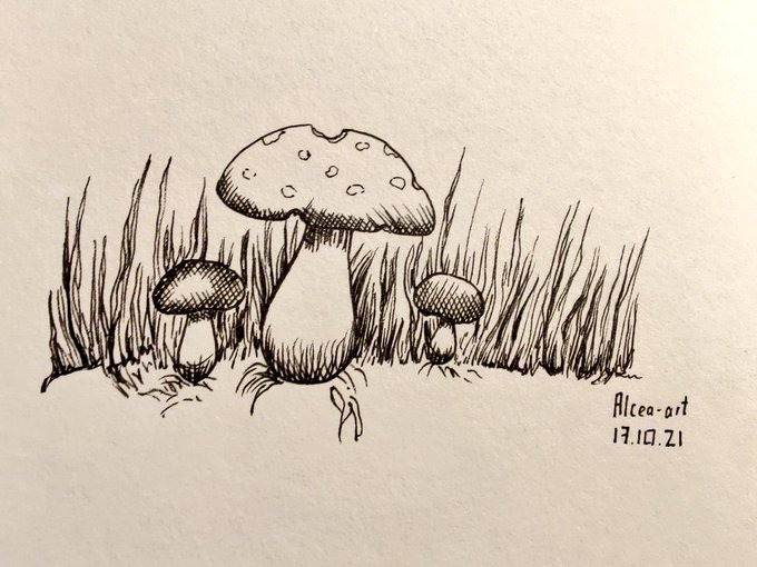 Mein Dritter Beitrag für Inktober. Und zwar habe ich mal Pilze gezeichnet. Ich habe hier ein wenig schraffieren geübt. Pilze esse ich nicht, aber ich zeichne sie ganz gerne. 😅 #Inktober #inktober2021 #mushrooms #pilze #tusche #ink