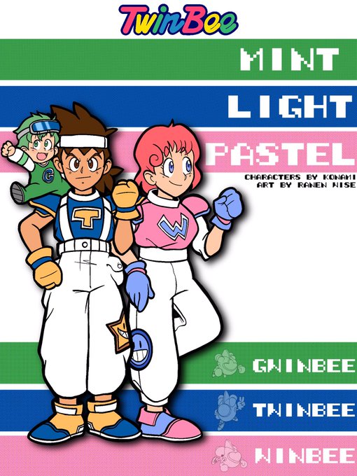 The 3 pilots of the #TwinBee series, Mint, Light and Pastel! (Art of the ships is by Konami) #Konami #ProcreateArt