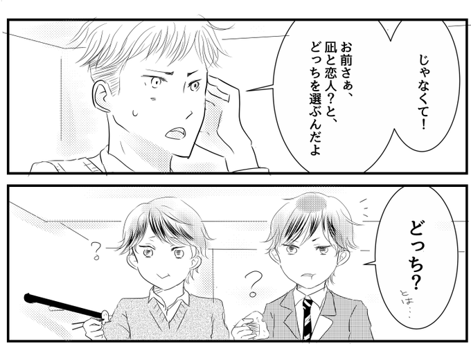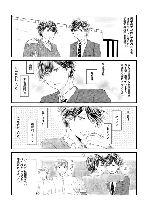 颯太(双子兄)と、その彼ピ。 比べてるわけじゃないだろうけど、違いはあるよね。 やっぱ4コマ漫画が描きやすい… #TwinsBL #創作BL ▼本編 pixiv.net/users/15773691