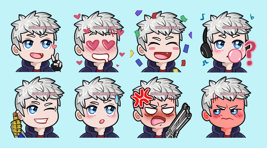 I finally made my first full set of emotes/emojis and it features Nero! Some of these cuties have been added to my Bit emotes on Twitch and the full set is available to use on my Discord right now. 💜 #DevilMayCry #DMC5 #Nero #twitchaffiliate #emoteartist
