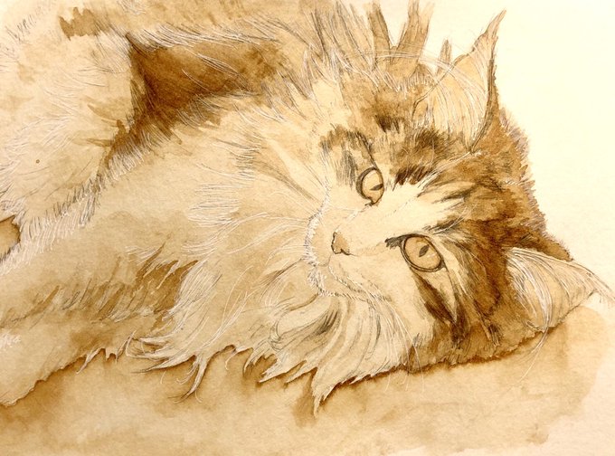 描いている絵を知ってもらうために最初の七日間は連続投稿しようと思います! 二枚目 コーヒー画の猫。 #模写 #猫 #動物 #コーヒー画 #過去絵 #絵描きさんと繋がりたい #イラスト好きな人と繋がりたい #自分を知ってもらうための7日間 #Twitter初心者