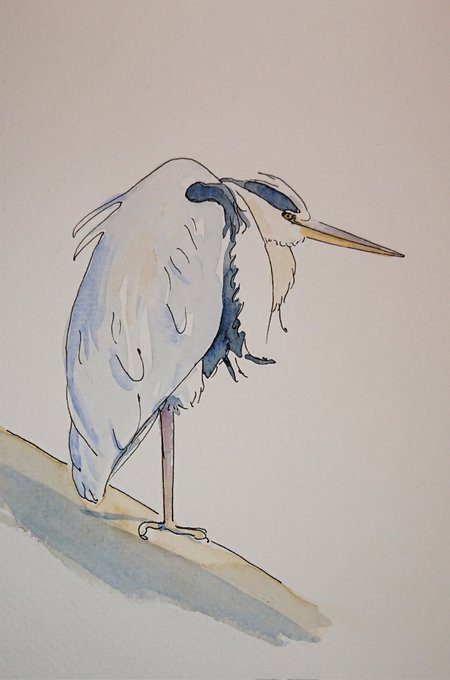 #dailydrawing2021 no 297 #dailydrawing no 501! Heron After yesterday's and today's depressing #inktober2021 I needed something cheerful 😂 Interpreted from @linz14865 great 📸 #Tweedmouth Thanks @every_heron #TwitterNatureCommunity #naturedrawings #heron #birds @CobbinSteve1