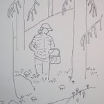 #dailydrawing2021 no 299 CONNECT Today's prompt word for #inktober2021 Mycorrhiza #fungi #connect trees and plants. People connect with trees, past and present. Daughter connect with me, in the #forest picking mushrooms #naturedrawings #TwitterNatureCommunity @CobbinSteve1