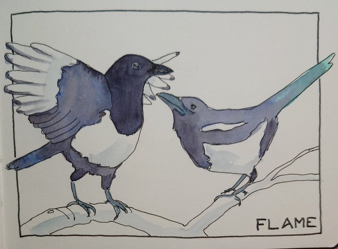 #artDD2022 no 285 Yesterday's FORGET prompt for #inktober2022 #Inktober Very apt as I forgot to post it 😂 #TwitterNatureCommunity #magpie @CobbinSteve1