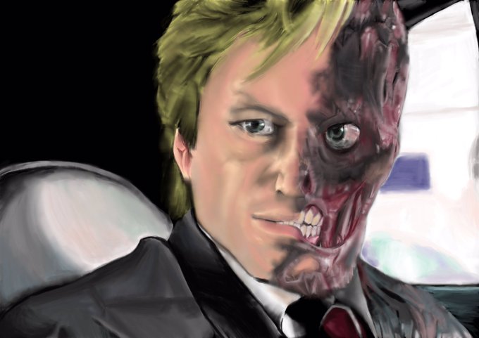 Inktober day 22: Two-face! Alec and Riddler! Boris Part 2 of the Batman Rogues Gallery AU #inktober #Twoface #Alectrevelyan #Riddler #Borisgrishenko #Goldeneye