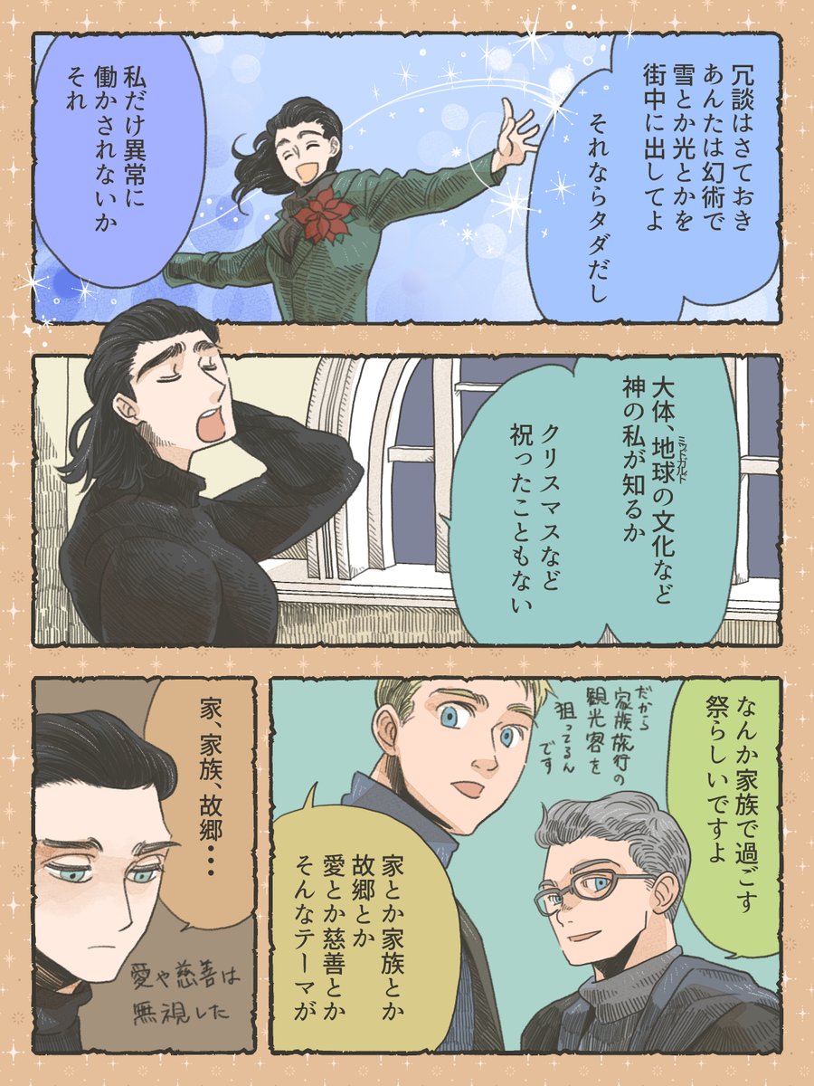 #TxLアドベントカレンダー2022 5日担当のちーずきむちもちです。 ❤️&⚡️の後に🐍ちゃんが帰って来てトニーやナタさんもいる平和アース。全部描き終わってから兄上を短髪にしちゃった事に気づいたけど、ウチの兄はずっと短髪オッドアイです😂 「クリスマスなんて大嫌い」①