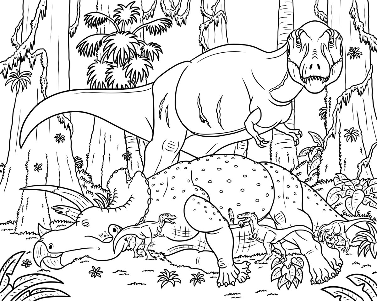 #Lineart for an upcoming scene in which a mother T. rex and her young are picnicking on Triceratops. #workinprogress #paleoart #tyrannosaurusrex #triceratops #dinosaurs #art #ArtistOnTwitter