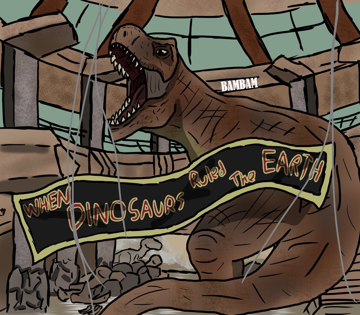 Art by @Emily_Art based on the chapter 'Evac' from the first Primitive War novel. The Father T. rex doesn't let trespassers escape. #primitivewar #dinosaurs #dinosaurart #dinosaurbooks #dinosaurfiction #dinosaurnovels #paleoart #paleofiction #tyrannosaur #trex #tyrannosaurusrex