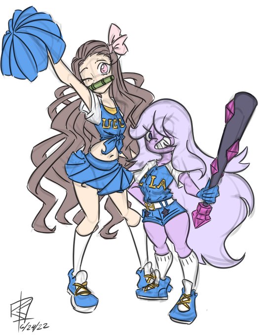 gift for coworker since it's his last day at the workplace. Daughters are fans of Demon Slayer, Steven Universe, and UCLA softball. #animeart #mangaart #clipstudiopaint #digitalart #digitalsketch #UCLA #demonslayer #stevenuniverse #amethyst #nezukokamado #baseball #fanart