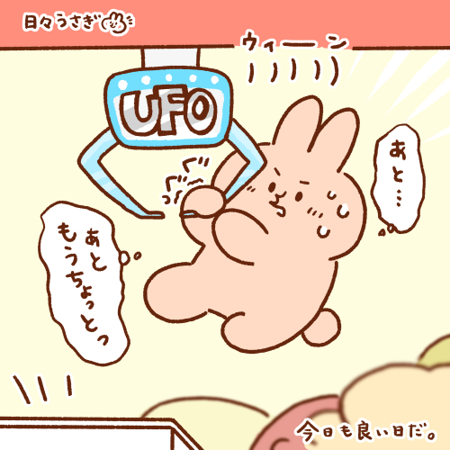 2023.06.24 UFO CATCHER MOVE「UFOキャッチャーな動き」 羽生えてるキャラだから出来るワザ。 今日は #UFOキャッチャーの日 らしいので。 #4コマ漫画 #創作漫画 #コメディ #オリキャラ #漫画が読めるハッシュタグ