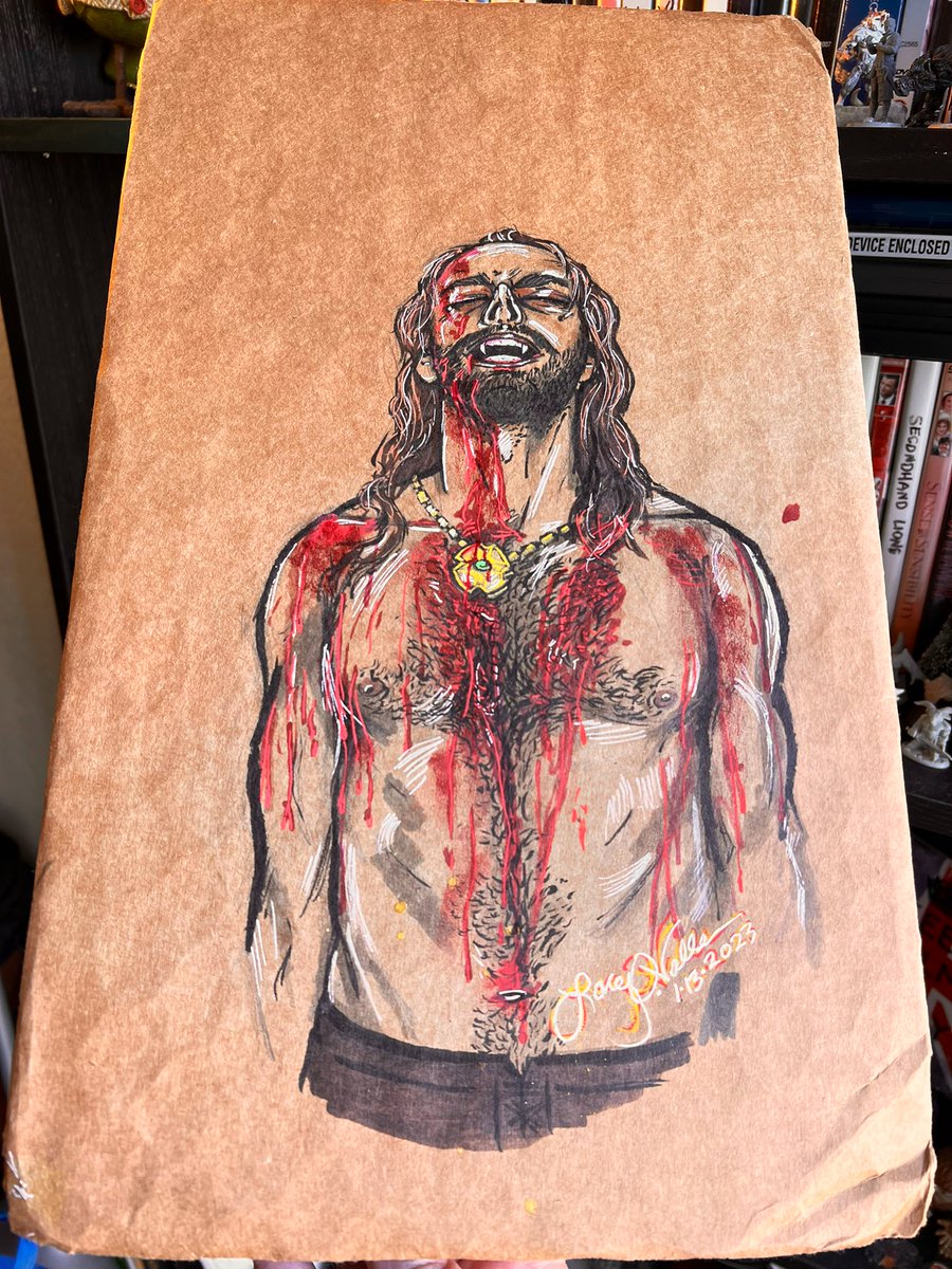 I drew this Lucian on a piece of cardboard used for shipping. I got it from the recycling bin at work.😅 #art #FanArtFriday #FanArt #MichaelSheen #Underworld