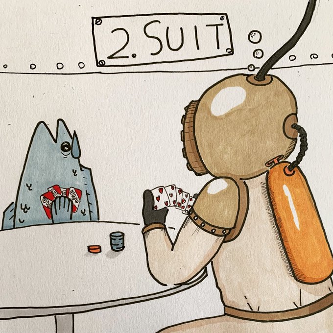 #inktober2021 #day12 and the prompt is #STUCK Seriously what game are they playing!? #fish #uno #poker #goldfish #drawing #scribble #doodle #ink #inktober #inktoberday12 #inktober2021day12 #divingsuit #scribblebrook #sequel