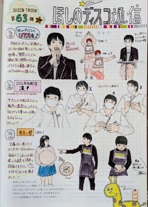 第63弾。露出は多くはありませんでしたが、一つ一つ濃かったです☺️絵の練習ついでにたくさん描きました*॰ॱ✍🏻 #ほしのディスコ #あいなぷぅ #パーパー #UTA魂 #ほしのディスコちゃんねる #ほしのディスコ通信 #ほぼ日手帳