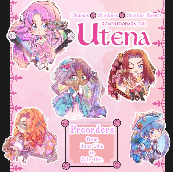 My Revolutionary Girl Utena Chibi Masquerade Goods Pre0rder is here, duelists!!✨✨✨ 3 different kind of goods: 🌸Charms 🌸stickers 🌸and Sticker Sheets Grab yours before July 10th!🌟🌟🌟 L1nks ⬇⬇⬇⬇ #Utena #RevolutionaryGirlUtena #ShoujoKakumeiUtena #RGU