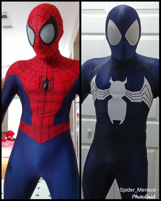 Love having these two. Hoping to shoot with them soon! 🔴🔵 Suit - @Spidey4Fun ⚫🟣 Suit - Printcostume.com & TjackFX #SpiderMan #Venom #SpiderManNoWayHome #ultimatespiderman #Spidey #cosplay #marvel #cosplayer