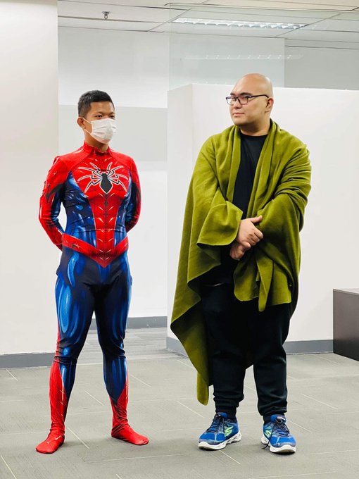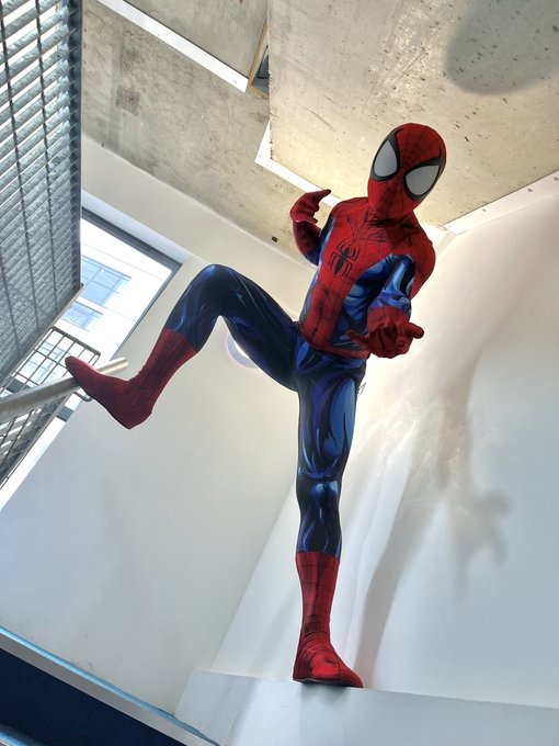 Spider-Man and Doctor Strange...in the different timeline. It was an honor to meet the management in our office in front of tons of agents! #SpiderMan #Marvel #lycra #cosplay #UltimateSpiderMan