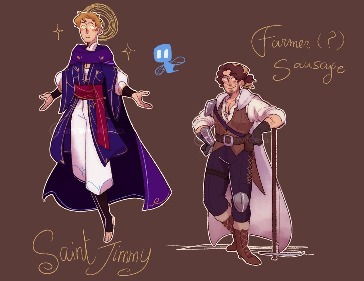 silly designs fore Saint Jim(based on saints statues) and ..farmer? rogue? Sausage #UltimateSurvivalSMP #solidaritygamingfanart #mythicalsausagefanart