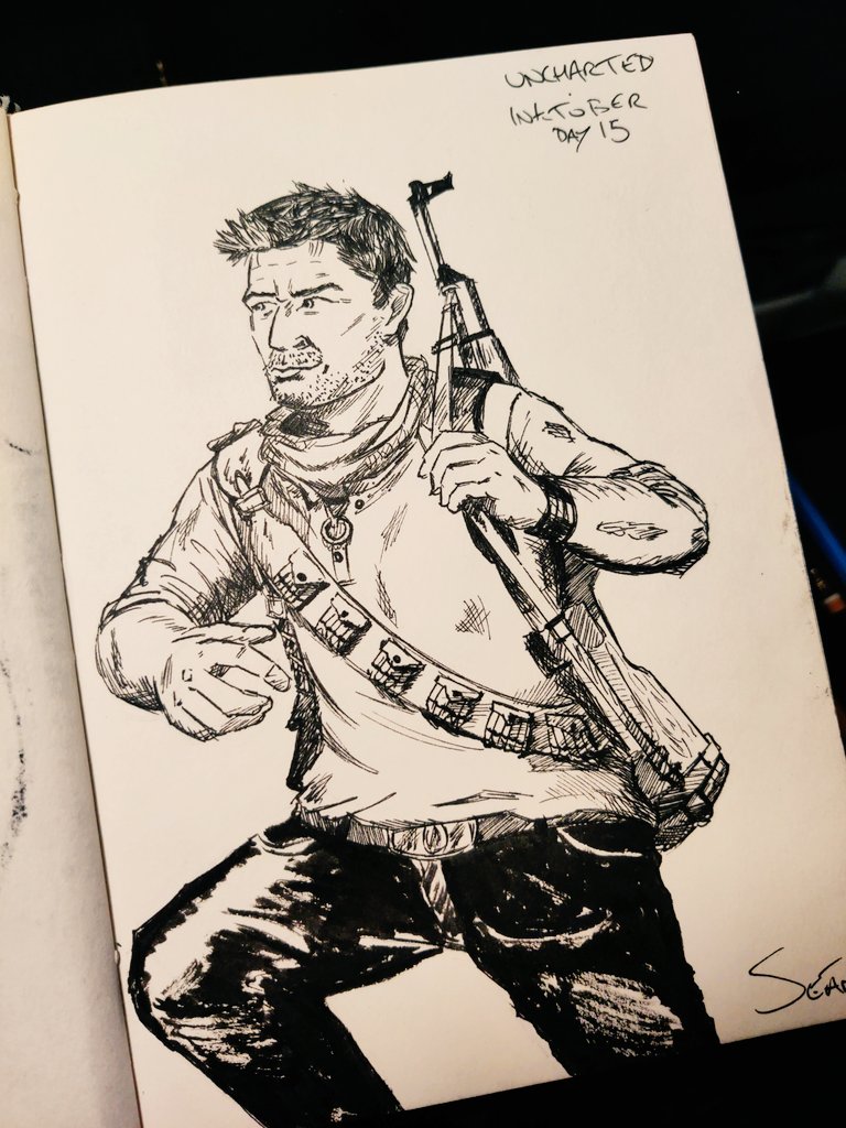 It's Nathan Drake for PlayStation Inktober day 15! The original #Uncharted was one of the first games that I played when I picked up a PS3, and its characters and story blew my mind! Truly an industry changing series that I still love #inktober2022 #Uncharted4 #PlayStation