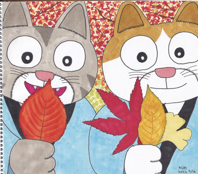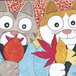 秋の気配 (暖かい日が続きますが秋は確実に来てますね) #猫のイラスト #猫の絵 #猫 #イラスト #Manga #CAT #アナログイラスト #일러스트 #イラストレーション #漫画 #ART #만화 #Mangas #Uneillustration #Illustration #オリジナルキャラクター #みんなで楽しむTwitter展覧会