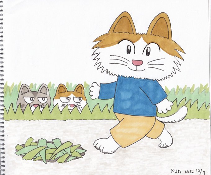 秋の気配 (暖かい日が続きますが秋は確実に来てますね) #猫のイラスト #猫の絵 #猫 #イラスト #Manga #CAT #アナログイラスト #일러스트 #イラストレーション #漫画 #ART #만화 #Mangas #Uneillustration #Illustration #オリジナルキャラクター #みんなで楽しむTwitter展覧会