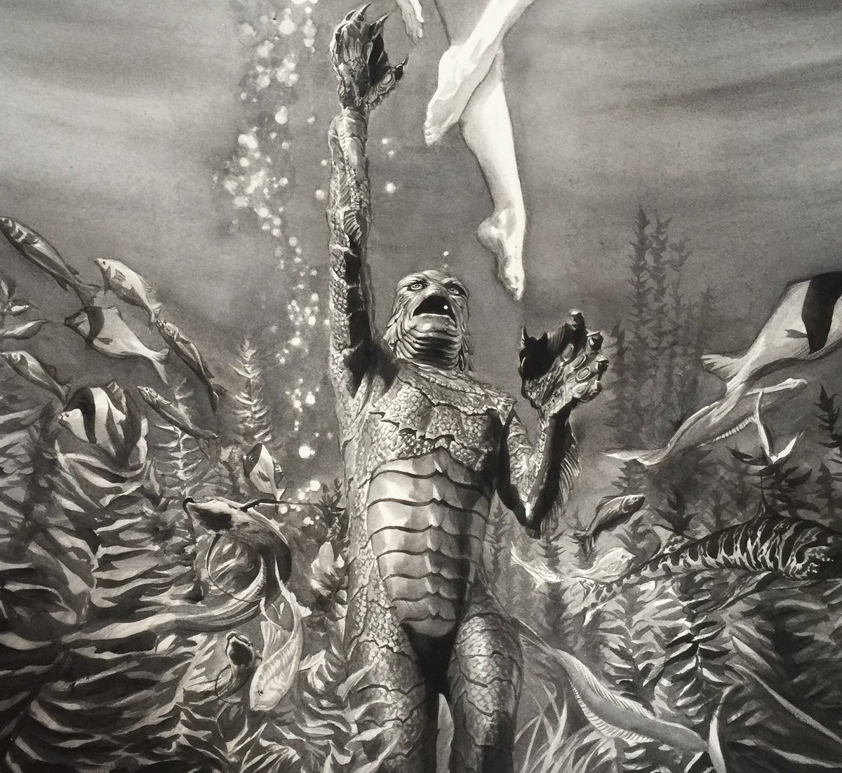Ghosts of #Drawlloween #Inktober past. 2018's Party at Doom Lagoon. #halloween #halloween2022 #creaturefromtheblacklagoon #blacklagoon #creature #seamonster #universalmonsters