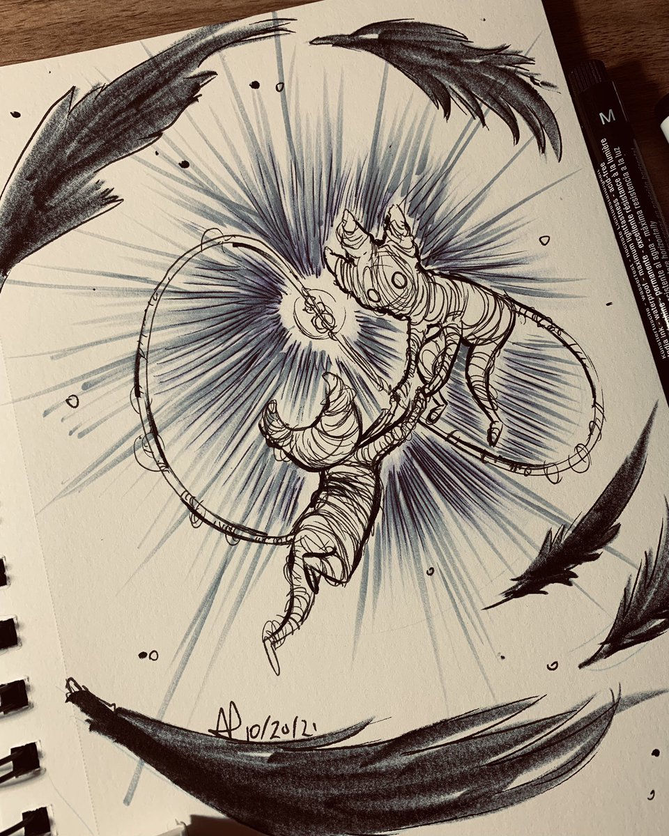 #inktober 4 - Knot Which game would fit better than Unravel (PS4 and others / 2016) So here is Yarny who seems to have problems to release this knot... #inktober2021 #traditionalart #ink #unravel #videogames