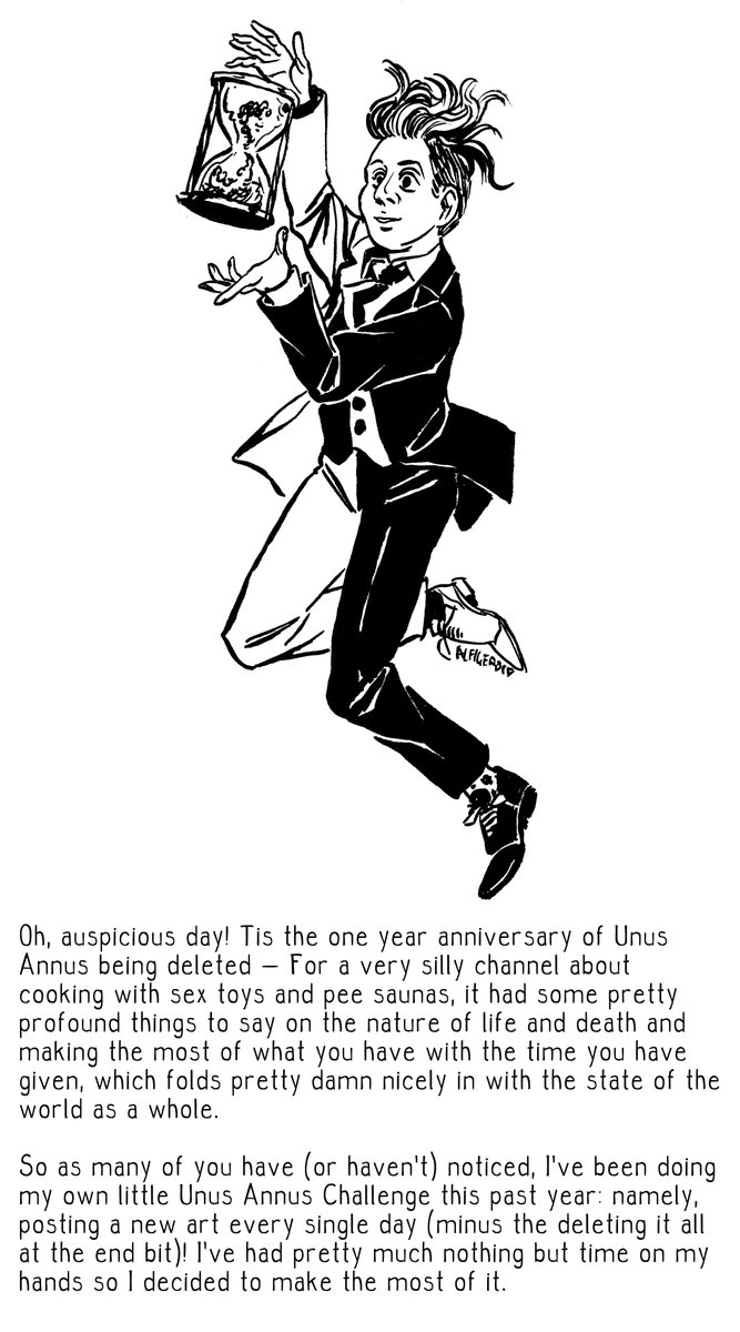It’s been one year since of the end of Unus Annus and everyone’s sharing their old art and stuff from then so here’s the NITW themed piece I finished in the last few minutes before the channel was gone forever! #UnusAnnus