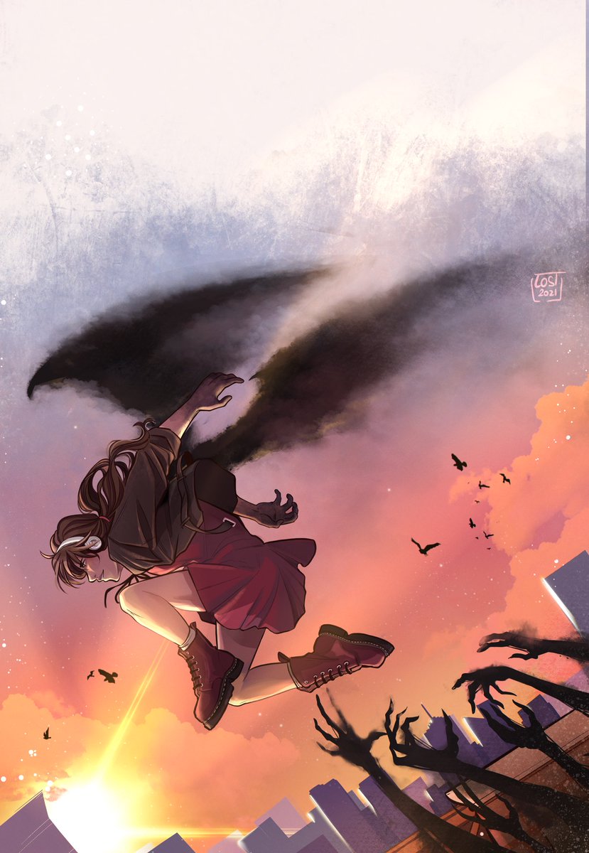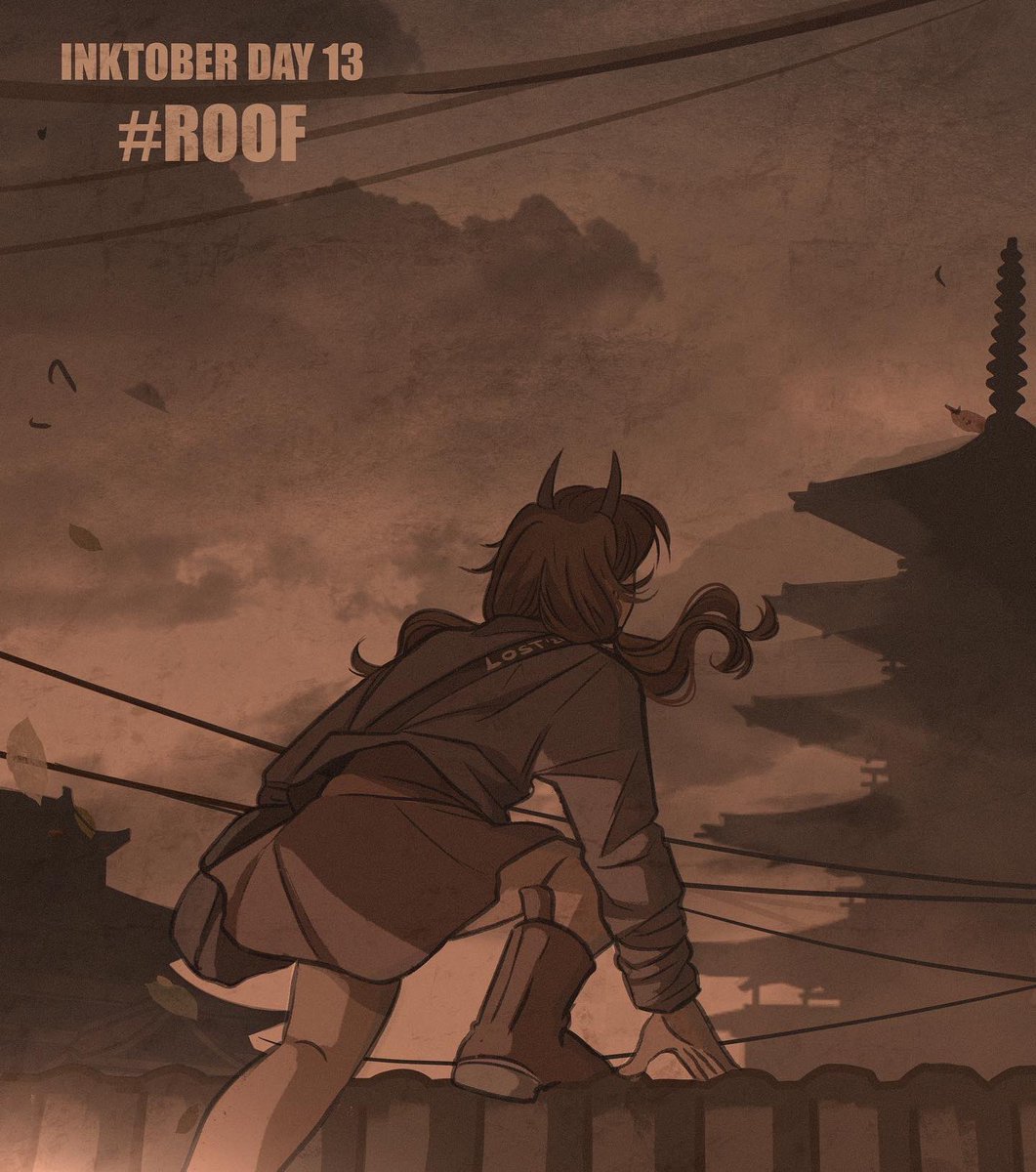 Rachel, an original character of mine for this #inktoberday13 and an old cover you could remember😏 Enjoy 😊 #roof #inktober #inktoberoof #skyline #artcover #ComicArt #comicartist #urbanfantasy #originalcharacter #demongirl