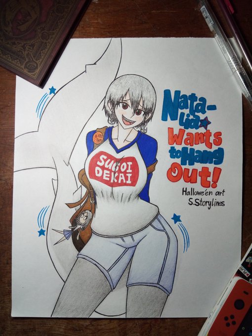 "Insult you? I could never do that, especially not you, Senpai" Natalia says. "...I bet college would've been really fun hanging out with you, too!" Photographer Senpai felt his heart skip a beat... #traditionalart #uzakichan #ArtistOnTwitter #Halloween