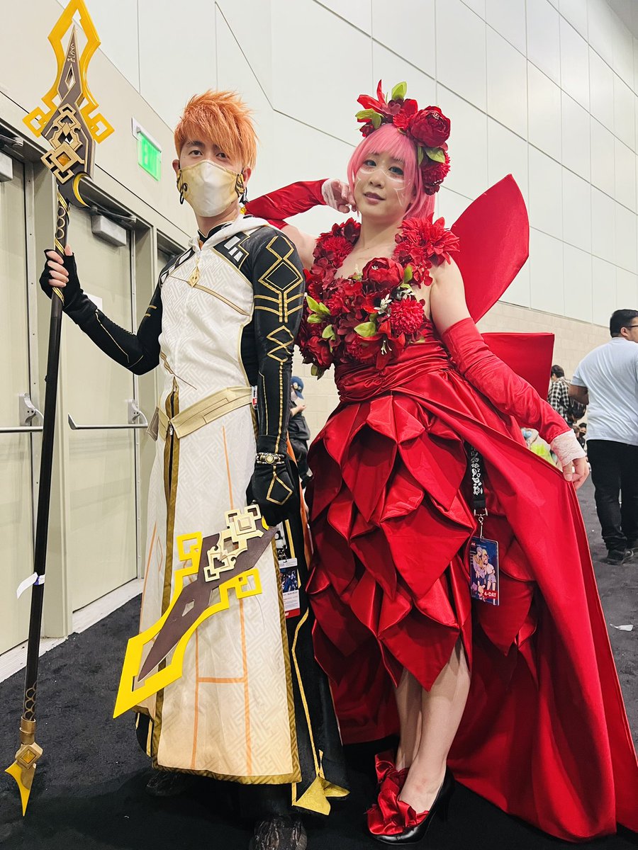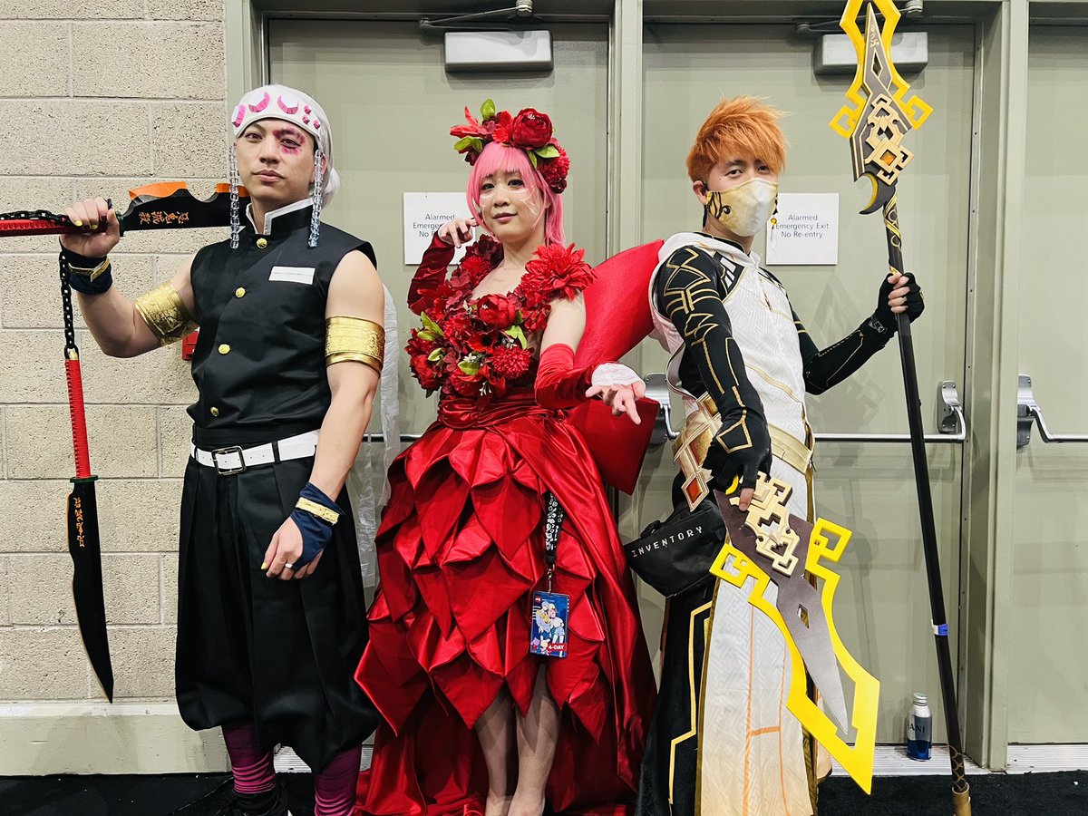 Cosplay with these amazing friends! Josh and Annie! Character: Tengen Uzui, Belle, and Zhongli. #GenshinImpact #demonslayer #zhongli #belle #tengenuzui #uzui #cosplay #AnimeExpo #AnimeExpo2022