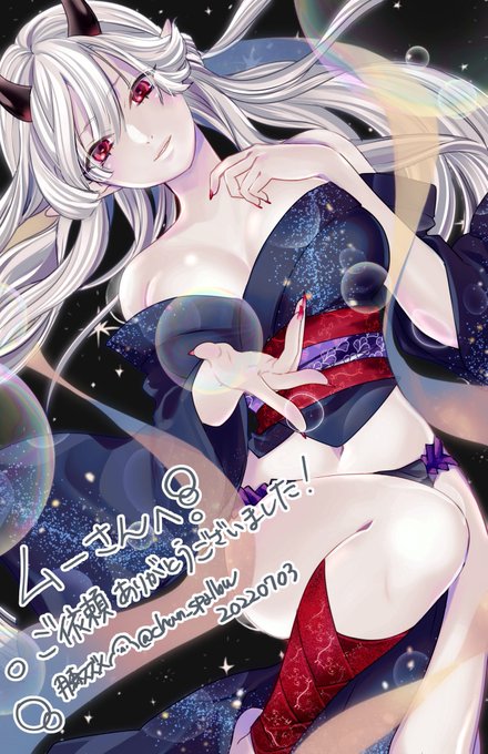 トガタさん(@nakogata )が毎月開催している #Vと絵師の宣伝スペース にてご縁のあったムーさん(@syabon09 )からのご依頼で、 シャボン液で覆われた特殊な体を持つ鬼の零姫ちゃんを、七夕仕様で描かせていただきました🌙*゚ ありがたや🙏✨