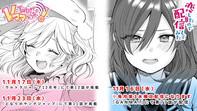 本日(19日)発売の 「ウルトラジャンプ7月号」にて 『VTuberはママならない!』第18話が掲載! 第1話試し読みはこちら➡tonarinoyj.jp/episode/326975… 感想ツイートなどには #Vママ をつけて頂けると嬉しいです☺️✨ よろしくお願いします🙏