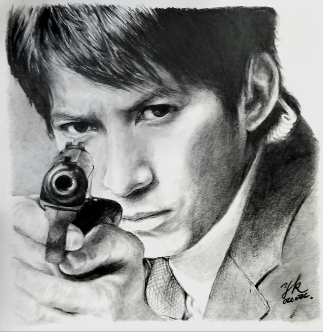 新作鉛筆画完成✏✨ ジャニーズは岡田くんしか勝たん🤣 ………ちょっと似てないね😑 #V6 #岡田准一 #似顔絵 #鉛筆画 #pencildrawing #pencilsketch #pencilart