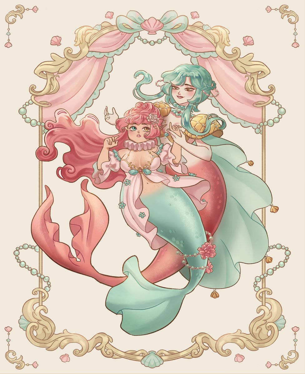I drew myself as a mermaid. The girl with turquoise hair is Celestear. She is my friend from a nearby kingdom. #mermay #mermay2022 #Jinetta_Art #Vartist #Vtuber #ENVtuber #VtuberTH #Jinetta_Bliss #Vtuber