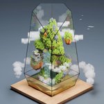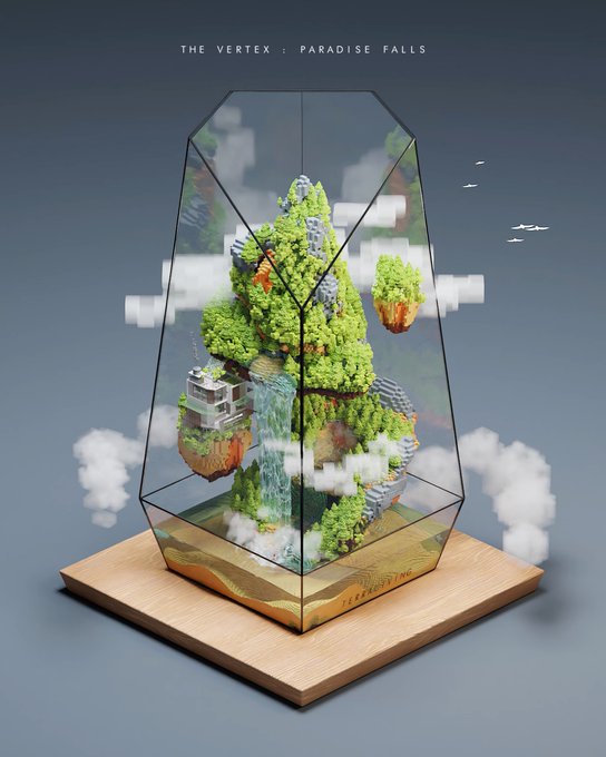The Art of TerraLiving Voxarium Digital Art Collection, "The Vertex - Paradise Falls" #terraliving #voxel #voxarium #digitalart #render #cgi #voxelterrarium #vertex #paradisefalls #voxelart #terrarium #summer #summermemories