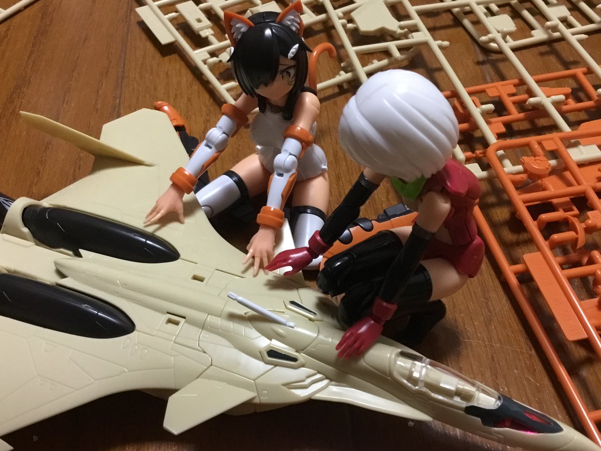 #マクロスモデラーズ #VFガール 呪泉郷の娘溺泉(ニャンニーチュアン)に落ちた早乙女あると出来ました。 V.F.G.メサイヤちゃんの前髪を改造。髪色のみエアブラシ塗装、胴体は缶スプレーで塗り替えました。 VF-25Fはランカちゃん付属品を部分塗装、光沢トップコートで仕上げました。 #アオシマ