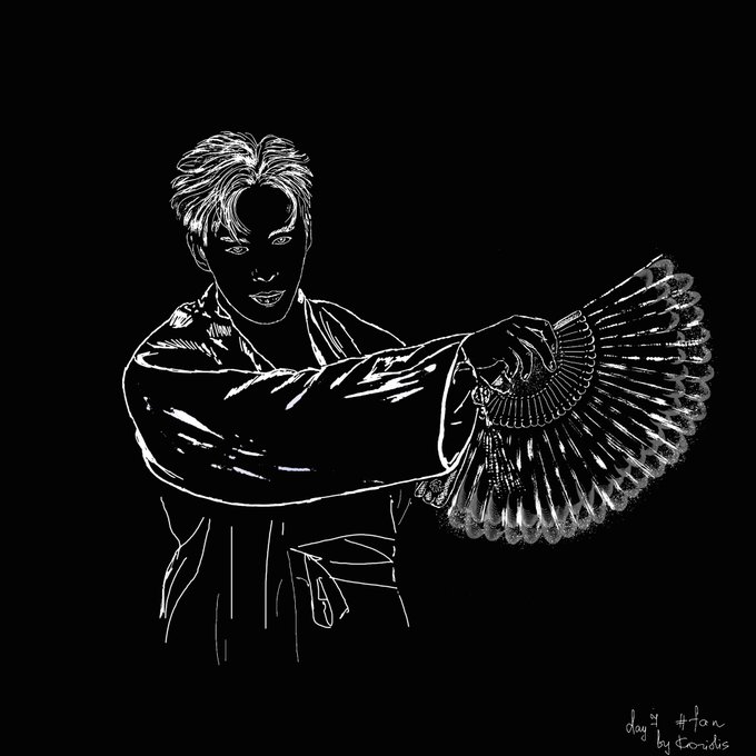 День 7. Fan🖋⛩ Обожаю слова с двойным смыслом вообще, а уж мне с корейцами так вообще сам макаронный монстр велел... 😁 Проследить за Феячным Инктоберфестом можно: t.me/fejachu #inktober #inktober2021 #shangrila #corelpainter #vixx #hongbin #leehongbin #day7 #fan