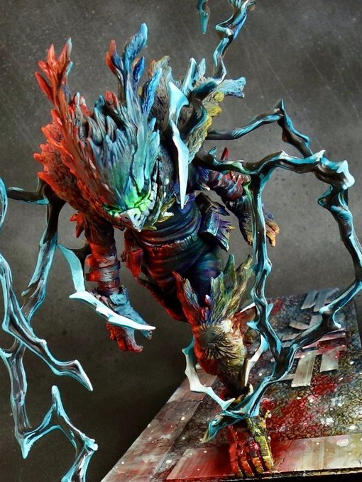 部門名:D フリー部門 作者名:一刀 作品名: 【キラボス(グレイト・ナッシュトゥーフ騎乗)】Killaboss on Great Gnashtoof ハイライト部分やレイヤリング部位にファレホを使用。 #VKMコン9Twitterエントリー #ウォーハンマー #warhammer